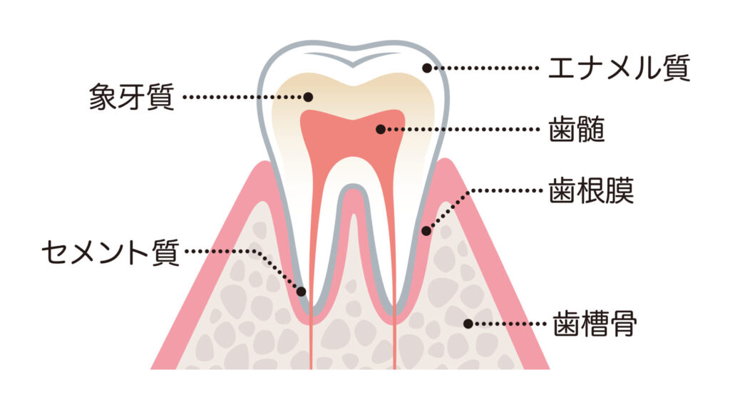乳歯は永久歯よりもやわらかく、歯の表面のエナメル質が薄いので、むし歯になりやすい構造をしています。