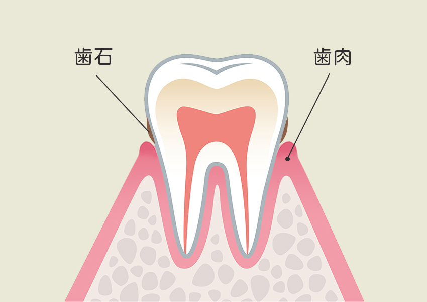 歯に付着した歯垢が、時間が経って石灰化すると「歯石」になります。