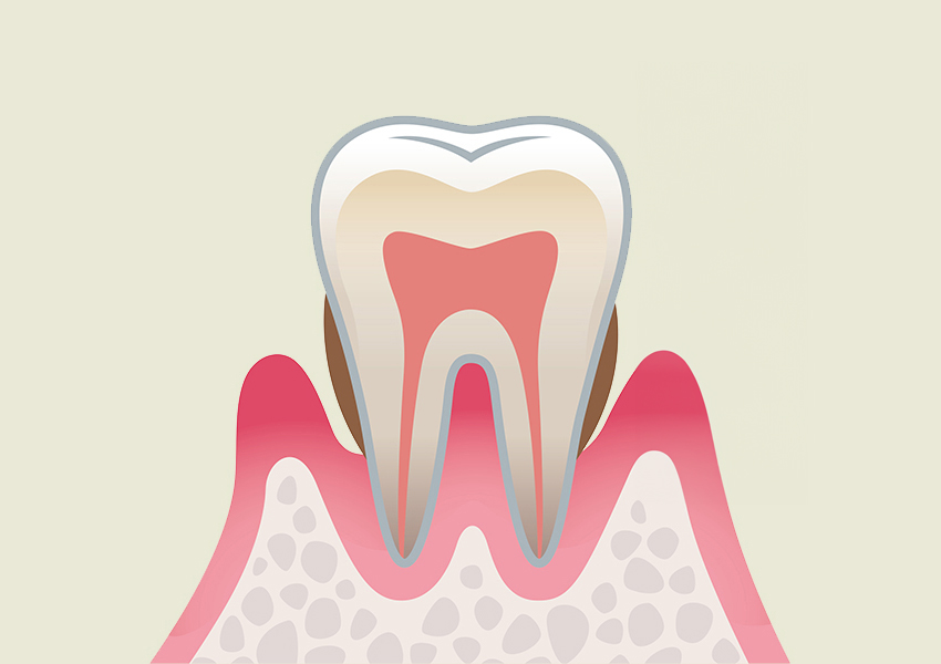 歯ぐきだけが赤く腫れている状態です。歯垢が溜まっていることで、歯ぐきに炎症が起こります。歯石は歯ぐきよりも上の部分についており、歯周ポケットは1~3mmの深さです。