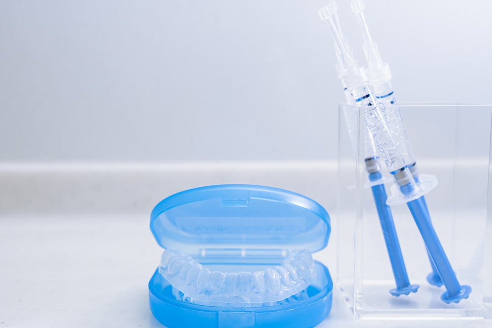 ホワイトニング用のマウスピースと薬剤を歯科医院で受け取り、ご自宅で施術します。