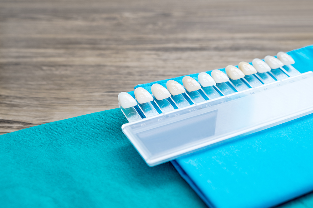 歯の色見本を見ながら、「現在の歯の色」と「理想の歯の色」を確認します。